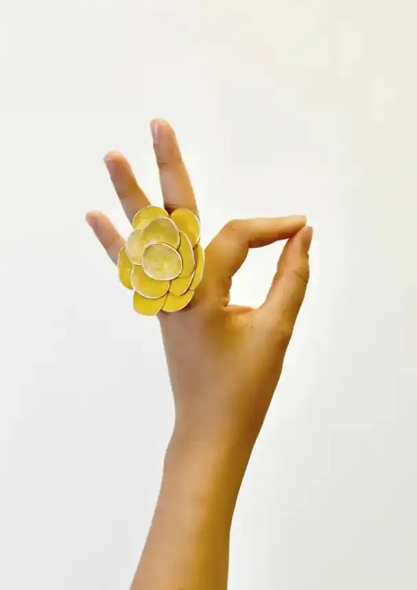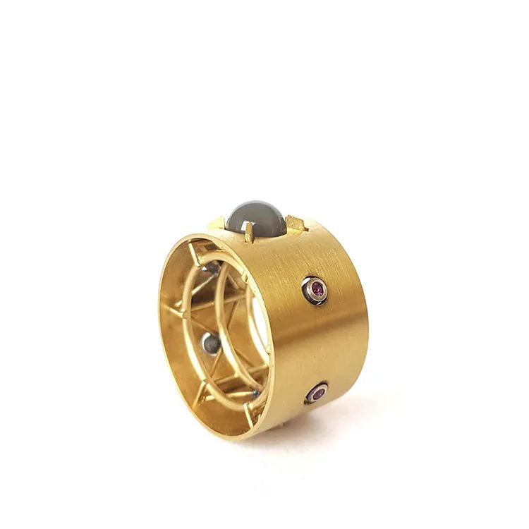 Heather Guidero 作品中的圖形線條、紋理和圖案的靈感來(lái)自現(xiàn)代主義設(shè)計(jì)、時(shí)尚和城市建筑元素,并轉(zhuǎn)化為符合道德來(lái)源的金銀。該系列尤其以充滿活力、發(fā)光的蛋白石為特色。Guidero 的創(chuàng)作天生可穿戴,是對(duì)體積、運(yùn)動(dòng)和圖案的原創(chuàng)探索,最終轉(zhuǎn)化為身體上的個(gè)人互動(dòng)雕塑。