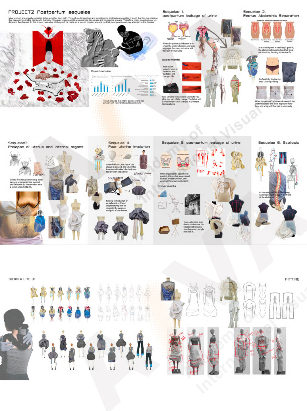 “事實(shí)上,大多數(shù)女性從一出生就被期望成為母親。但是通過對產(chǎn)后后遺癥的了解和調(diào)查,我發(fā)現(xiàn)這個(gè)過程會對身體造成不可逆轉(zhuǎn)的傷害。可很多人羞于表達(dá),羞于科普這一點(diǎn),所以很多人對這種疾病并不了解。在這個(gè)項(xiàng)目中,我們將制作可穿戴服裝作為一種科普方式,讓更多的人關(guān)注到產(chǎn)后后遺癥 ,包括產(chǎn)后漏尿后遺癥 、腹直肌分離、直腸膨出等等病癥?!?/p>
