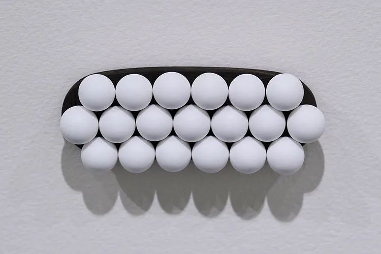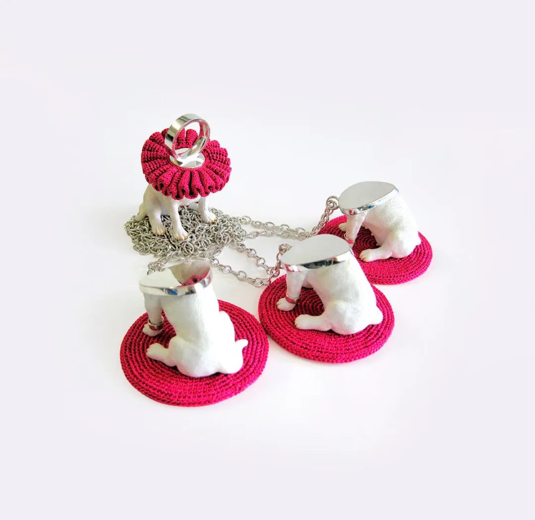 這些色彩鮮艷的串珠項鏈由 Manon van Kouswijk 制作,在墻上作為一組展示時,既具有圖解形式主義,又可以隨意、愉悅地穿戴在身上。第一系列名為《建筑和身體的珠子》,去年在 Alta Forma 的“墻臂和桌腿”展覽中展出。在第二系列作品中,Manon 將早期作品中體現(xiàn)的理念推向了新的邏輯,但令人驚訝的點。