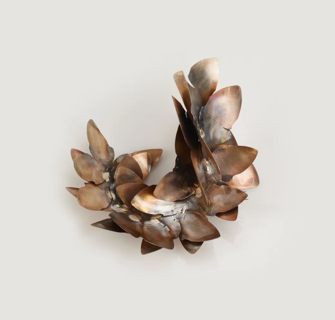 我創作的雕塑作品充滿存在感,靈感來自我周圍女性的豐富故事。原始紋理、天然寶石和優質金屬以保留自然精髓的方式結合在一起。