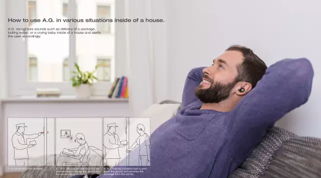 Assistant Glasses Set是為了幫助聽障人士的日常生活所設(shè)計,讓聲音及風(fēng)險因素視覺化,并通過震動提示。因為失去聽力,許多聽障人士面臨著從聲音當(dāng)中獲取資訊的困難。比如當(dāng)有訪客按響門鈴、當(dāng)某個警鈴響起、開水煮沸的時候,輔助眼鏡組能將這些聲音視覺化,并且指示這些聲音代表的意義及來源方向,使他們能夠簡單地處理這些聲音信息。此外,它還會對于街道上可能意味著危險的聲音做出提示,像是汽車?yán)龋源_保用戶的安全。