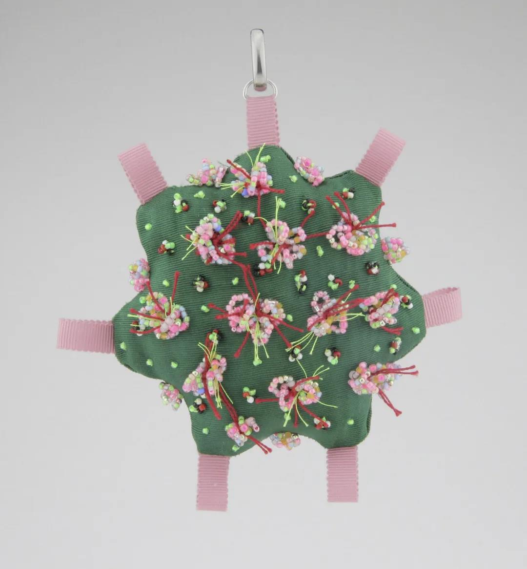形容病毒有著“以尖刺為裝飾”的外表,醫學作家Ronnie Henry在美國疾病管制與預防中心CDC網站上的一句話,啟發了藝術家詩意的聯想。
