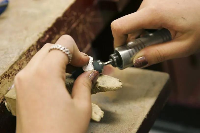 每學期,學院也會有針對首飾技術的選修課,例如黃金鑲嵌、電鑄、金屬染色、3D建模等等,技術課都是本科和碩士在一起上的。相對于國內,RISD的首飾技術課教得更詳細,工作室所提供的工具也更多。不過從課程量和種類上來說,國內會更多一些,因為還包含有很多傳統工藝的課程。
