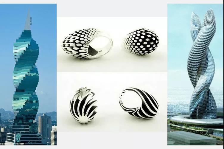 圖左:Pinzon Lozano設計的 F&F Tower,巴拿馬。圖右:CDI海灣國際提出的科威特Cobra Towers計劃。圖中戒指來自Sarah Herriot.