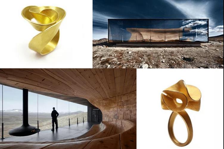 戒指分別來自Door Edelsmenden及Vera Garcia。建筑是由SNØHETTA & KNUT BJØRGUM設計,位于挪威Dovrefjell國家公園的野生馴鹿觀測中心。