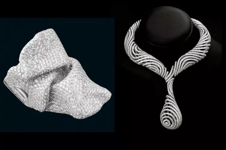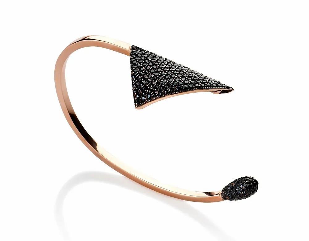 長鉆鑲嵌于沉穩的幾何形態中。Bracelet from Seto series by Monique Péan