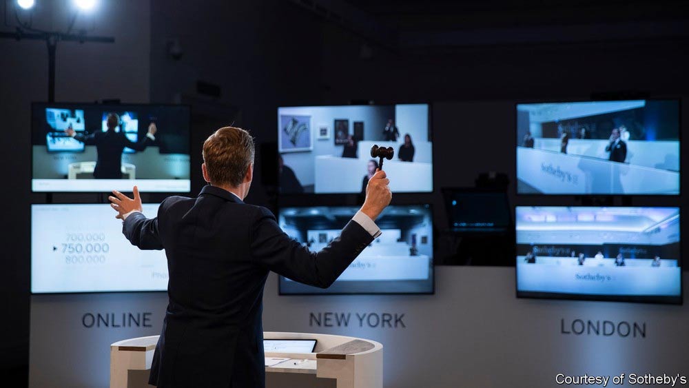 而今年的新冠疫情也促使全球藝術(shù)界真正開啟了“直播賣貨(拍賣)元年”。美東夏令時6月29日晚,蘇富比印象派、現(xiàn)代藝術(shù)及當代藝術(shù)夜間拍賣首次以網(wǎng)上直播的形式,橫跨時區(qū)聯(lián)動紐約、倫敦、香港三地同步舉槌進行。