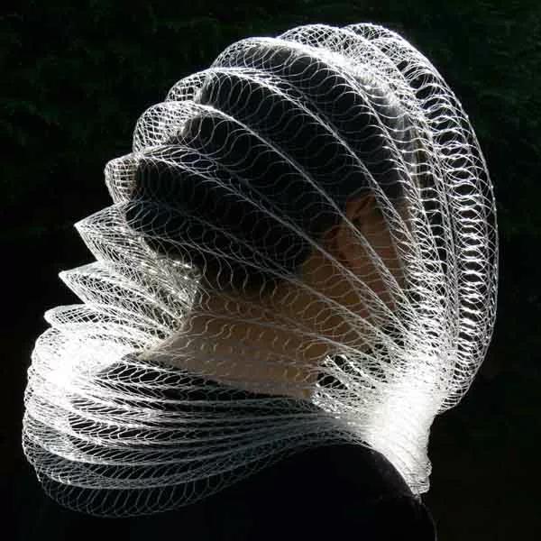 “我喜歡局限于一種具體的材料來探索它的全部范圍。廣泛的技術,從熔化到連接和扁平,形成細致網絡狀藝術作品。”