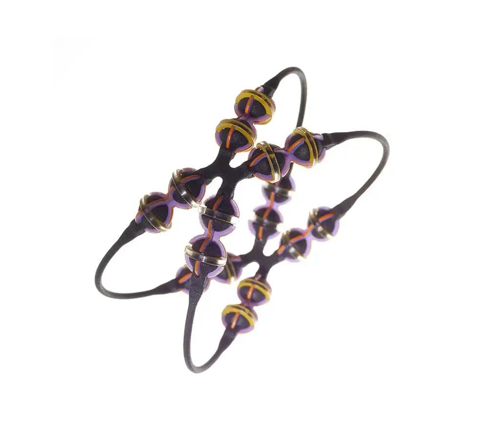 Mommersteeg設計的形狀變得更加有機和自由,它們的電線結構致密或松開,并在身體周圍流動。她所制作的別針似乎長得像細胞,手鐲讓人聯想到堆積如山的水晶與凝塊熔巖。