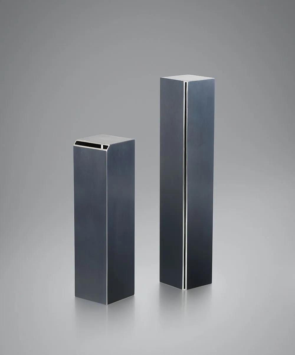 該系列利用邊緣上突出的切口和開口作為門,來揭示和強調內部和外部空間的聯系。引入光的變化作為催化劑貫穿作品,形成不同的陰影,成為了作品本身多變的回聲。它增強了視覺沖擊,并質疑了作品與周圍環境的關系。每件作品都是獨一無二的,是經過精心控制和設計的制作過程的結果。所有作品都是用氧化純銀手工制作而成的。