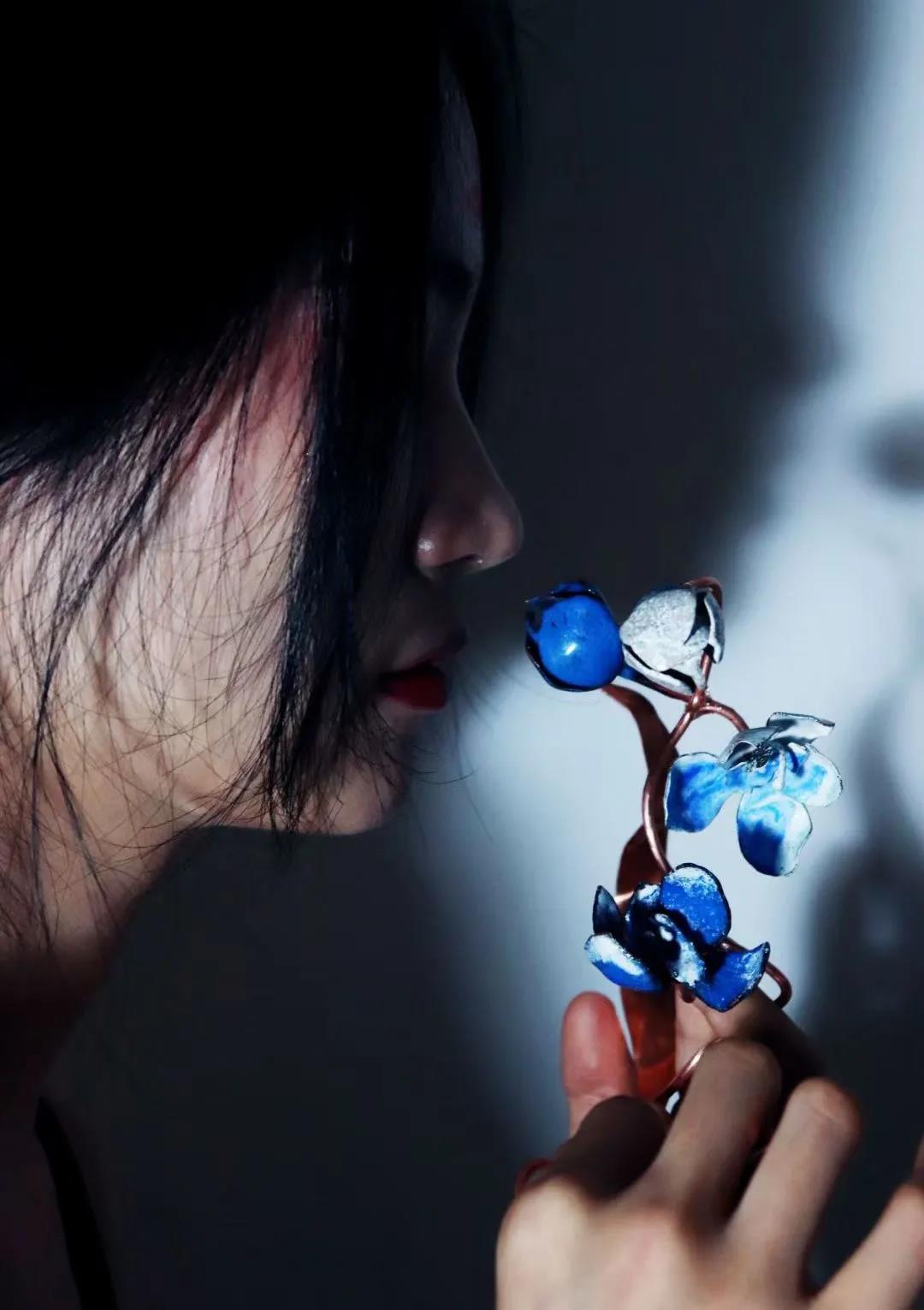 YIXUAN:這次獲獎的作品源自于我在大二第一學期選擇的課題,我運用金屬和琺瑯工藝,結合青花瓷元素,通過首飾表達對于中國傳統花卉——蘭的理解。這個作品也延續了我在預科關于中國山水畫鳥文化的課題。