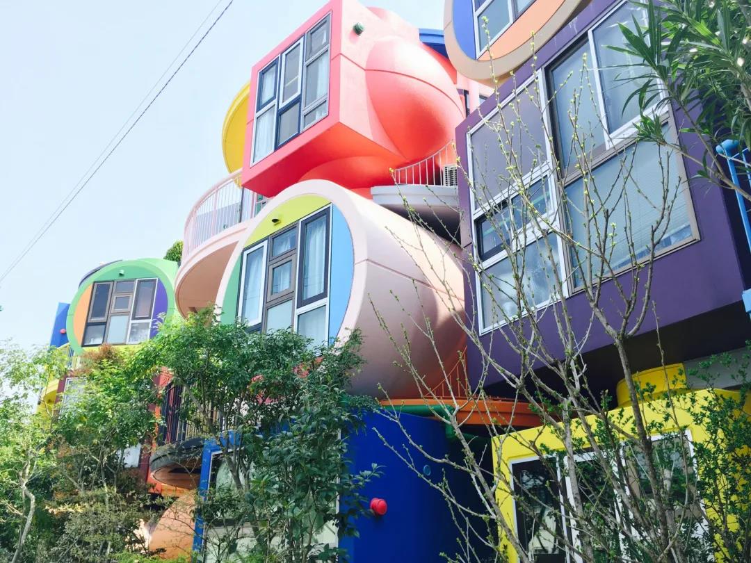 在東京三鷹市,有一排五顏六色的怪異建筑——外部由黃、橙、綠、藍、紫等各種不同顏色的球體和立方體并合而成,走進建筑里,更是讓人頭暈眼花: