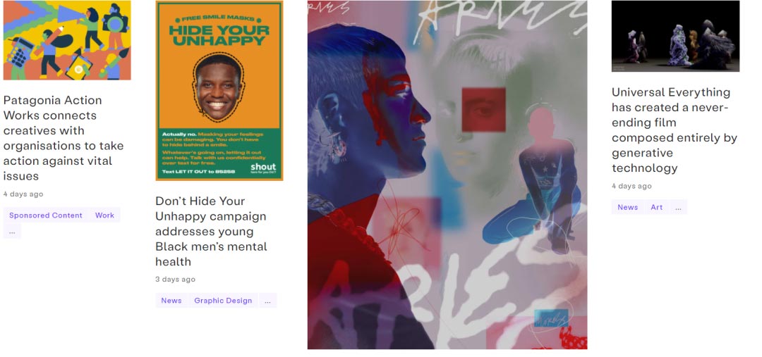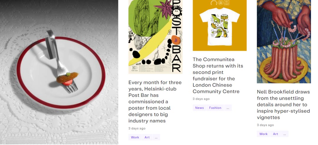 現(xiàn)在,每個(gè)標(biāo)簽都有自己的專用頁面,只要點(diǎn)擊標(biāo)簽就可以直接轉(zhuǎn)到自己喜歡的內(nèi)容,用戶可以非常容易的在IT'S NICE THAT上找到有趣的故事、充滿靈感或是獨(dú)特的創(chuàng)意作品。