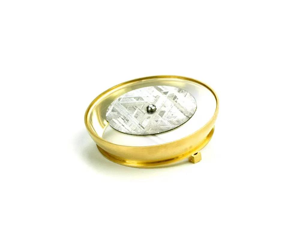 19k gold, 18k white gold, 950 platinum, meteorite, sapphire window, natural violet blue diamond.