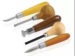 這種情況下推刀絕倒是不可或缺的工具。中間三把推刀主要用于鑲嵌施力,也可輔助錘子借力。邊上兩把用于拋光金屬表面。