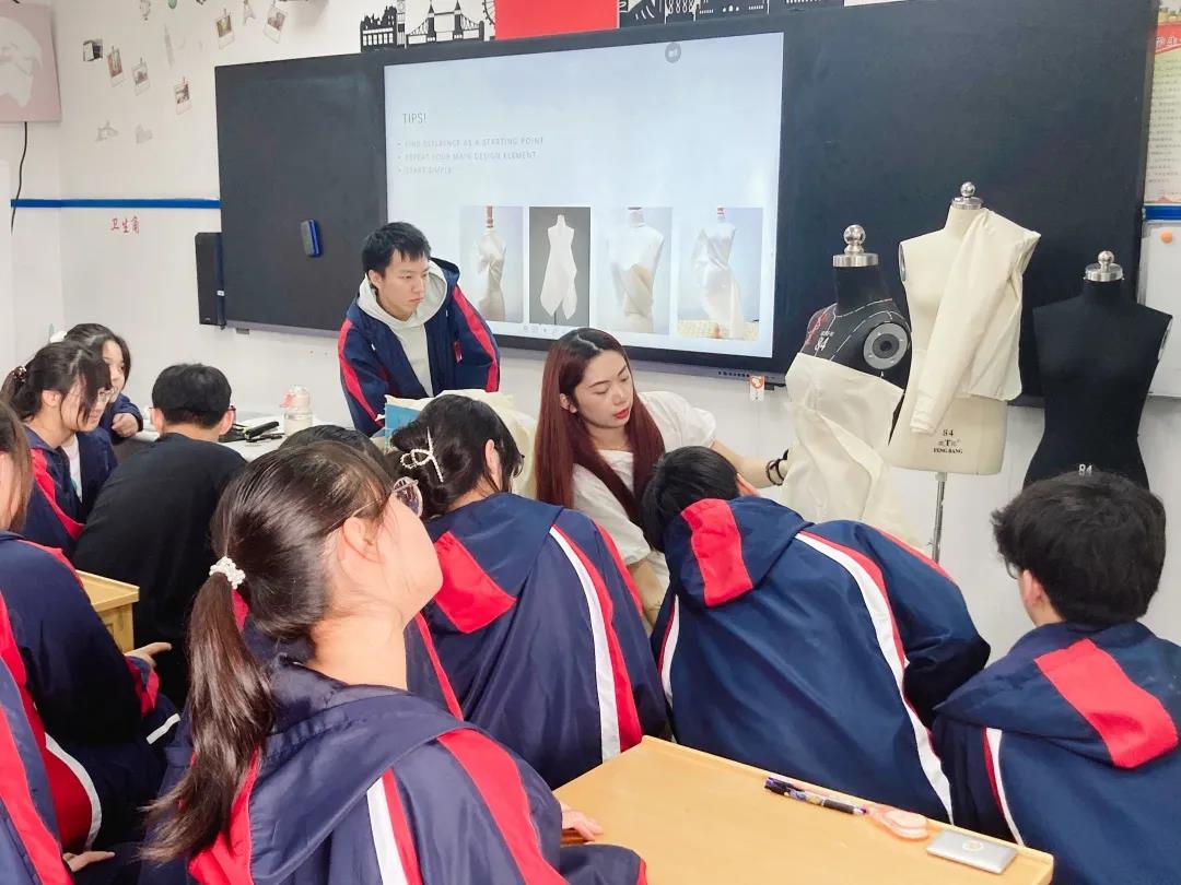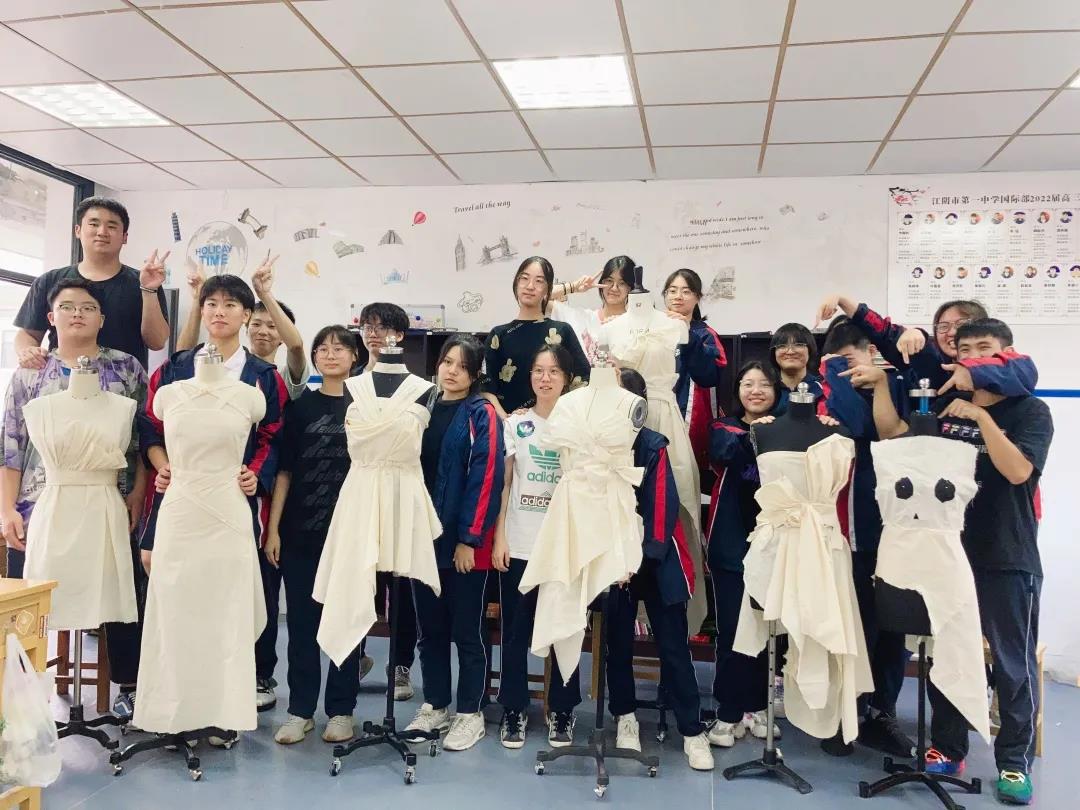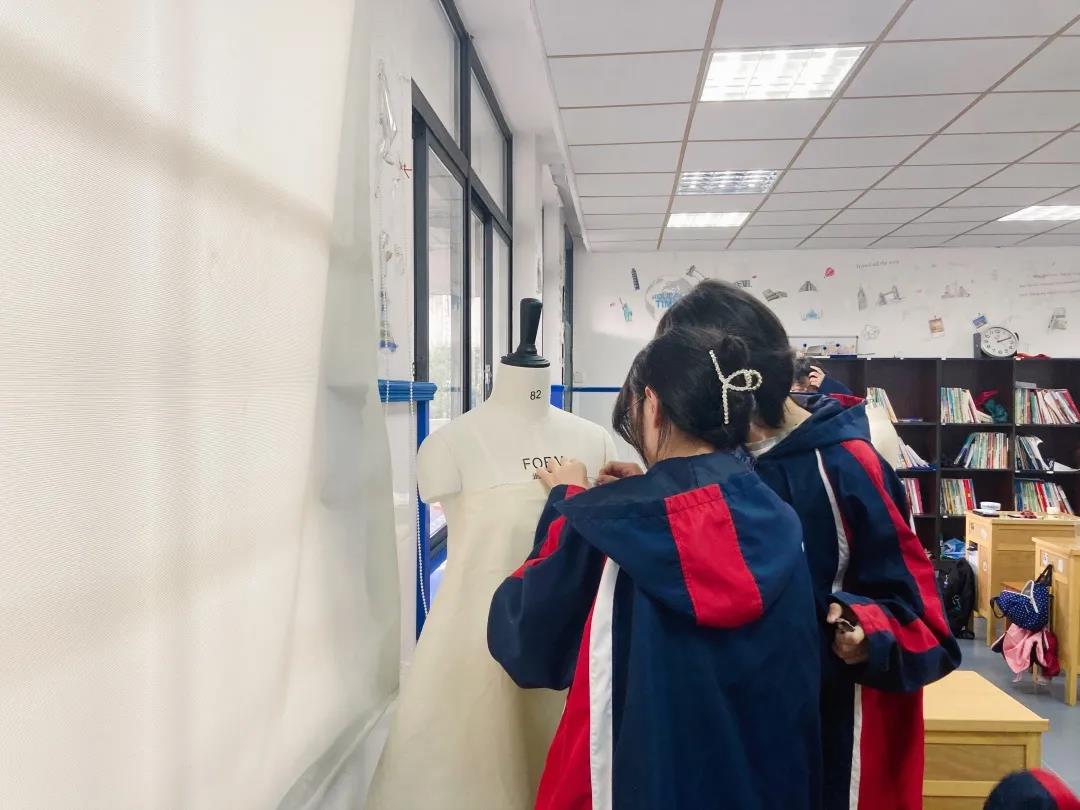 為了讓同學(xué)們有機(jī)會(huì)走進(jìn)服裝設(shè)計(jì)的背后,AIVA的老師們特地將一個(gè)“簡易服裝工作室”搬入江陰一中國際部的高二教室,帶大家親手實(shí)踐服裝設(shè)計(jì)中專業(yè)而重要的造型手法——立體剪裁。