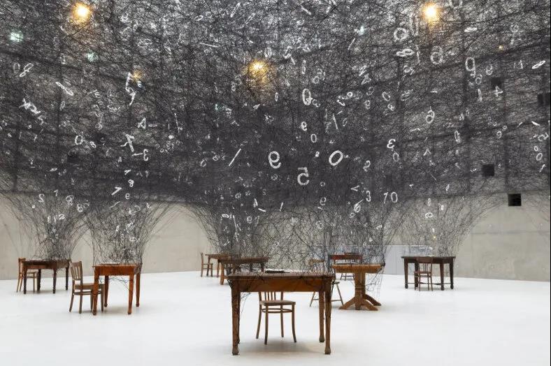 鹽田千春1972年出生于大阪,工作生活在柏林。1996年從京都精華大學油畫系畢業以后,她搬到德國,師從Marina Abramovic。她以線條聞名于世,作品包括裝置、行為、錄像。鹽田千春創造復雜龐大的沉浸式線條經脈式的結構裝置,作品中用鞋子、鋼琴、椅子來組合。