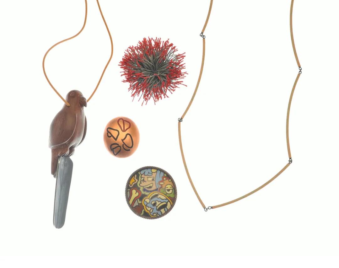 巴爾的摩當地的資深首飾藝術家Betty Cooke,靈感來源于自然世界,尤其是動物和鳥類,以及動力學形式,并使用金屬管、搪瓷、木材和寶石等多種材料。Betty Cooke 強烈的構圖感是她所有作品的基礎,并基于她的信念,即“一個圓圈和一條線,你可以制作任何東西”。