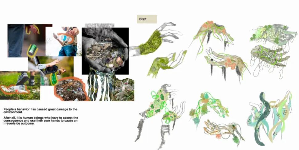 最后我將sample做成了手套,希望提醒大家,所有的污染都是人類親手造成的,我在自然中拍攝了最后成品的照片和視頻,這是手和環境無言的對話。