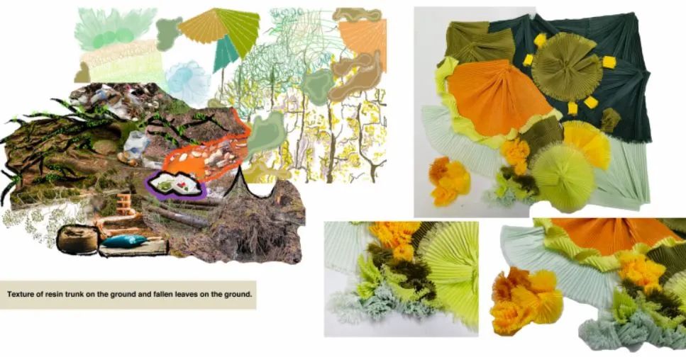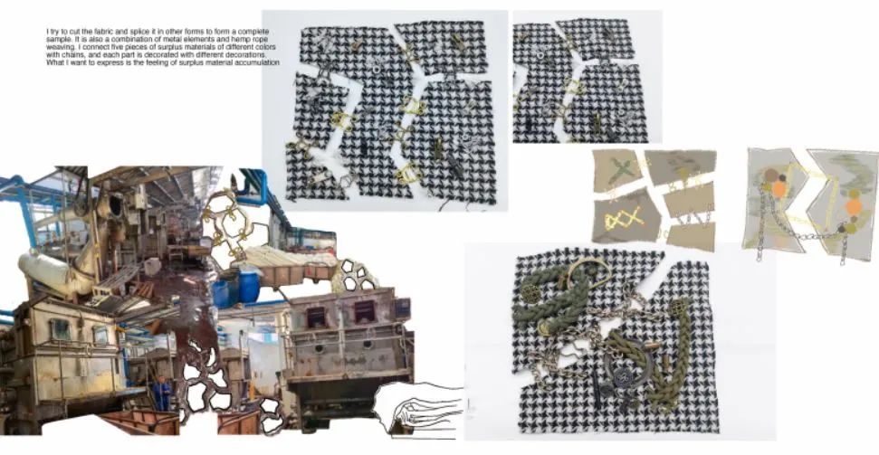 其實對我來說,做research和拼貼是最難的。做sample以及材料的選擇和運用我還是比較在行的。但拼貼因為之前沒做過,比較生疏,還是葉老師一步一步教我的。葉老師真的教了我很多,還教我怎么用Procreate,給我示范畫草圖,做拼貼,立裁,打版,做樣衣,帶著我捋思路等等等等,就差握著我的手幫我做了!啊哈哈哈。面試前葉老師也幫我改了好多次稿子,有個七八九個版本了,特別耐心。
