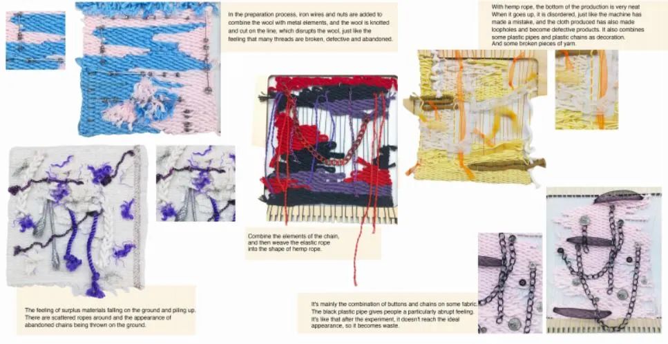 但是在服裝設計的預科學習中,我發現自己很喜歡面料改造這一個小part。我的動手能力比較強,本來就喜歡做一些奇奇怪怪的手工和實驗,所以覺得做面改就像玩一樣,愿意去嘗試很多方式,實驗很多次也不會覺得煩,我覺得面料設計非常非常適合我,也可能這就是熱愛吧,啊哈哈哈。