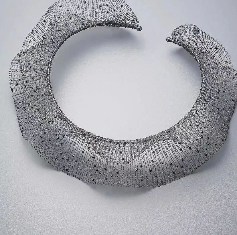 相比于傳統(tǒng)的紡織編織工藝,金屬首飾制作流程差異大,因此需要提前考慮好焊接、澆鑄處理~ 但是金屬編織也有顯著優(yōu)勢(shì),即金屬材料硬度高可塑性強(qiáng),造型設(shè)計(jì)靈活,可以展示出材料的多樣性,體現(xiàn)出金屬編織藝術(shù)首飾的特點(diǎn)。