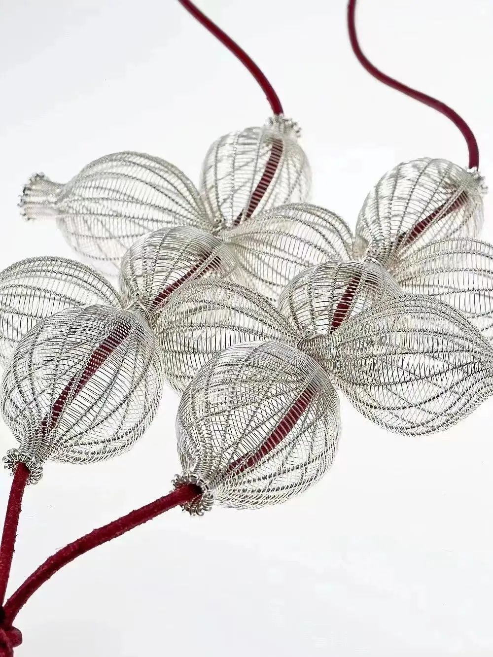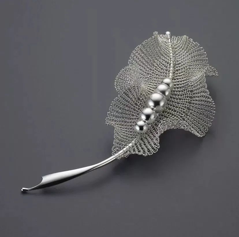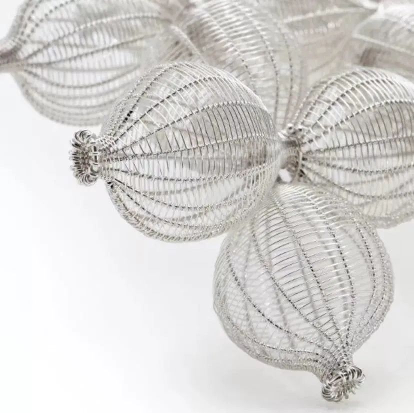通透柔軟的銀絲,如果實(shí)如嫩芽、舒展自然,一如生命脆弱而堅(jiān)毅;經(jīng)緯線的排列和纏繞,勾勒出形體的輪廓。今天就帶領(lǐng)大家體驗(yàn)首飾藝術(shù)家運(yùn)用金屬編織幻化出的虛實(shí)空間,以及分享一些金屬編織常用的工具和技法~