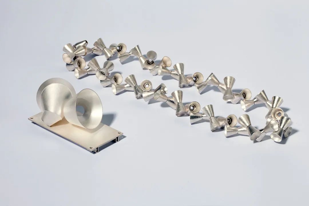 基于當(dāng)今世界對社會正義的強(qiáng)烈抗議,Eichenberg邀請觀眾參與到包含性別和身份等話題的對話中,以尋找一個安全且受歡迎的避風(fēng)港,探討現(xiàn)實的真實性。Eichenberg曾在德國、荷蘭生活和工作,目前主要在美國,她為當(dāng)代首飾和金屬制品帶來了不同尋常的多元文化視角。與她現(xiàn)在主要進(jìn)行的物品創(chuàng)作相比,Eichenberg的首飾更為人所知,她創(chuàng)作的作品從護(hù)身符般的形式到令人默想的裝置。身體是她的基本主題之一,她常常以一種挑釁的方式引用它,有時直接,有時詩意。