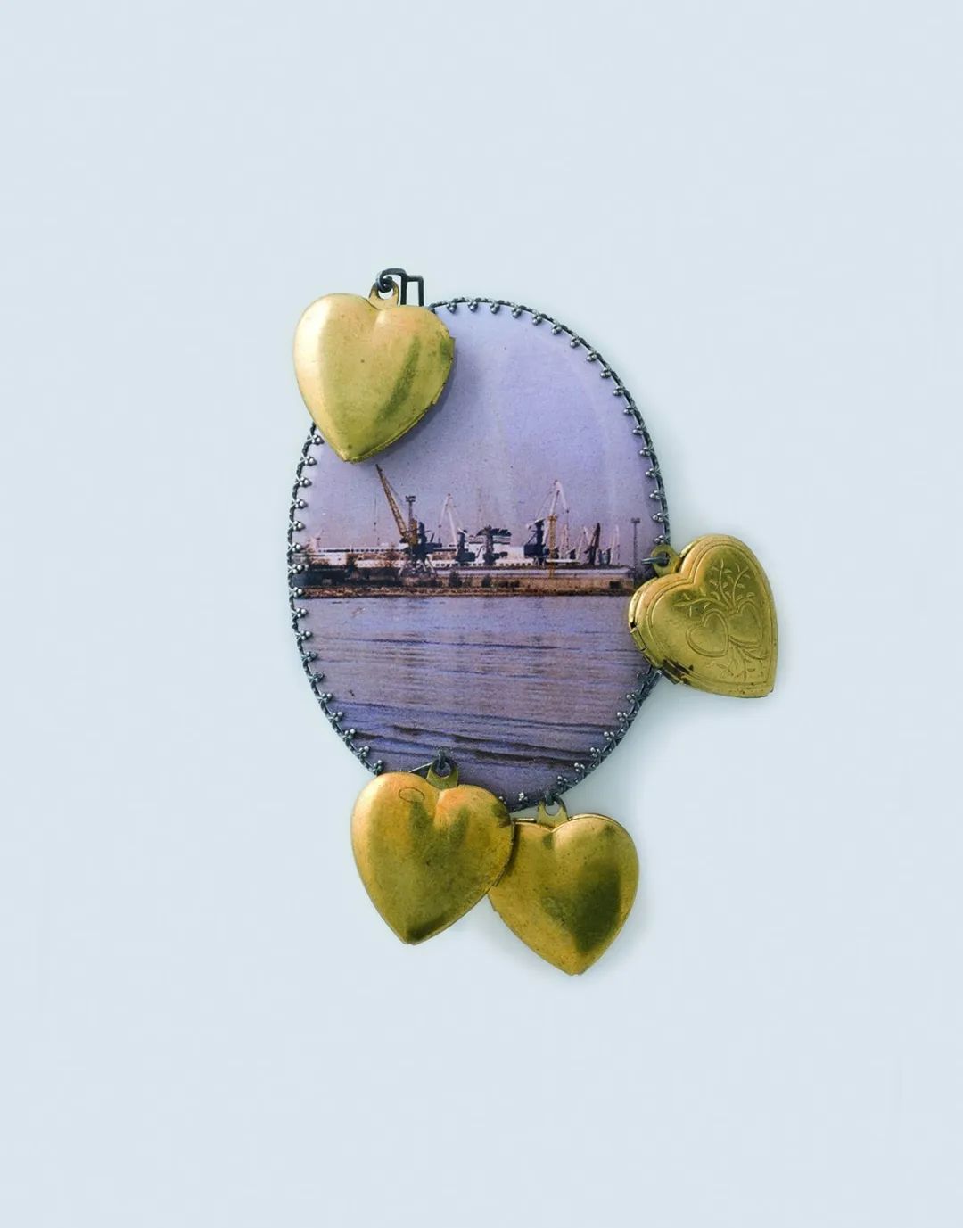 “ 我特別喜歡作品中的照片,它們展示了過去的地方或過去的人。我也經(jīng)常會使用我自己拍攝的樹干、鮮花、寂寞的小巷或風(fēng)景的照片。這些照片變成了首飾。為了將照片變成‘寶石’,圖案被蝕刻在小金屬板上或燒在琺瑯上。結(jié)合寶石或非寶石和物品,它們成為作品的一部分。我從不打算裝飾事物或讓它們看起來更漂亮,我試圖發(fā)現(xiàn)物體的靈魂或照片的本質(zhì),并想要塑造新的東西,超越光學(xué)外觀。我的作品不談?wù)撉榫常亲屓藗兡軌蚪佑|到“自己的故事。但誰擁有它們?我們,旁觀者還是作品本身?”