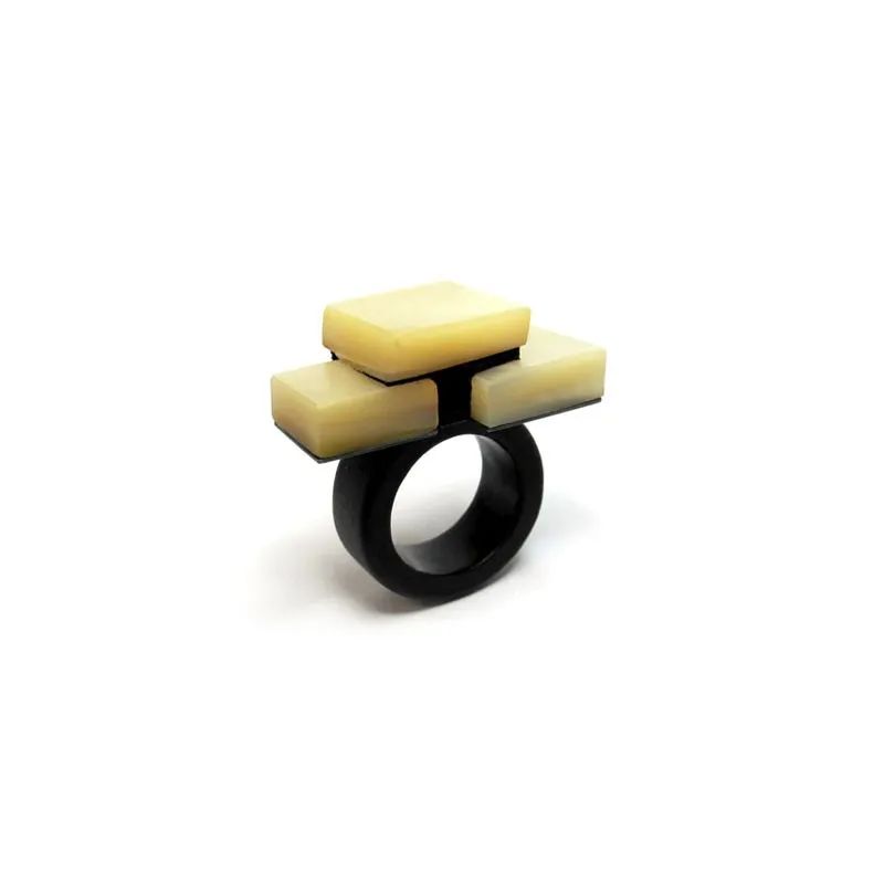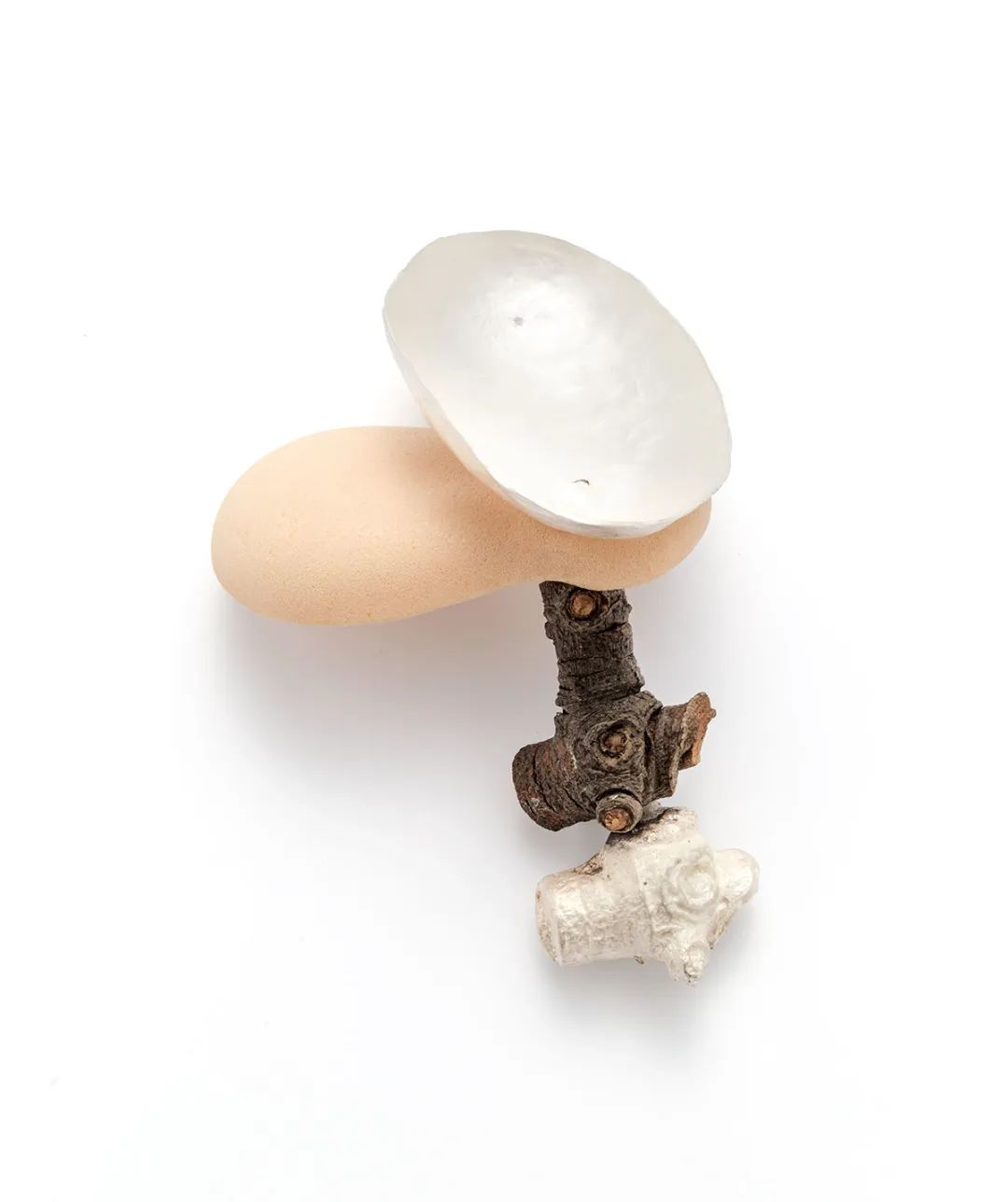 Minegishi制作的首飾和物品不僅需要佩戴,還需要撫摸。他通常將大塊天然材料(如烏木、琥珀、水晶、黑玉、日本木材和 lignum vitae)雕刻成環(huán),呈現(xiàn)出感性的漩渦、扭曲的平面或類似乳房的半球——這些具有觸感的物體體現(xiàn)了護(hù)身符的力量。每一個角度都展現(xiàn)出獨(dú)特視角,每一件作品都達(dá)到完美的平衡。Minegishi的作品尺寸雖小,卻展現(xiàn)出了雕塑造型的不朽。