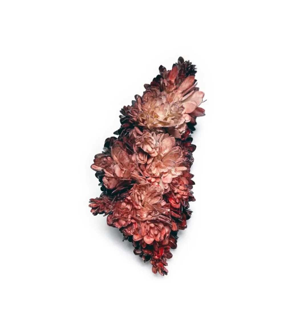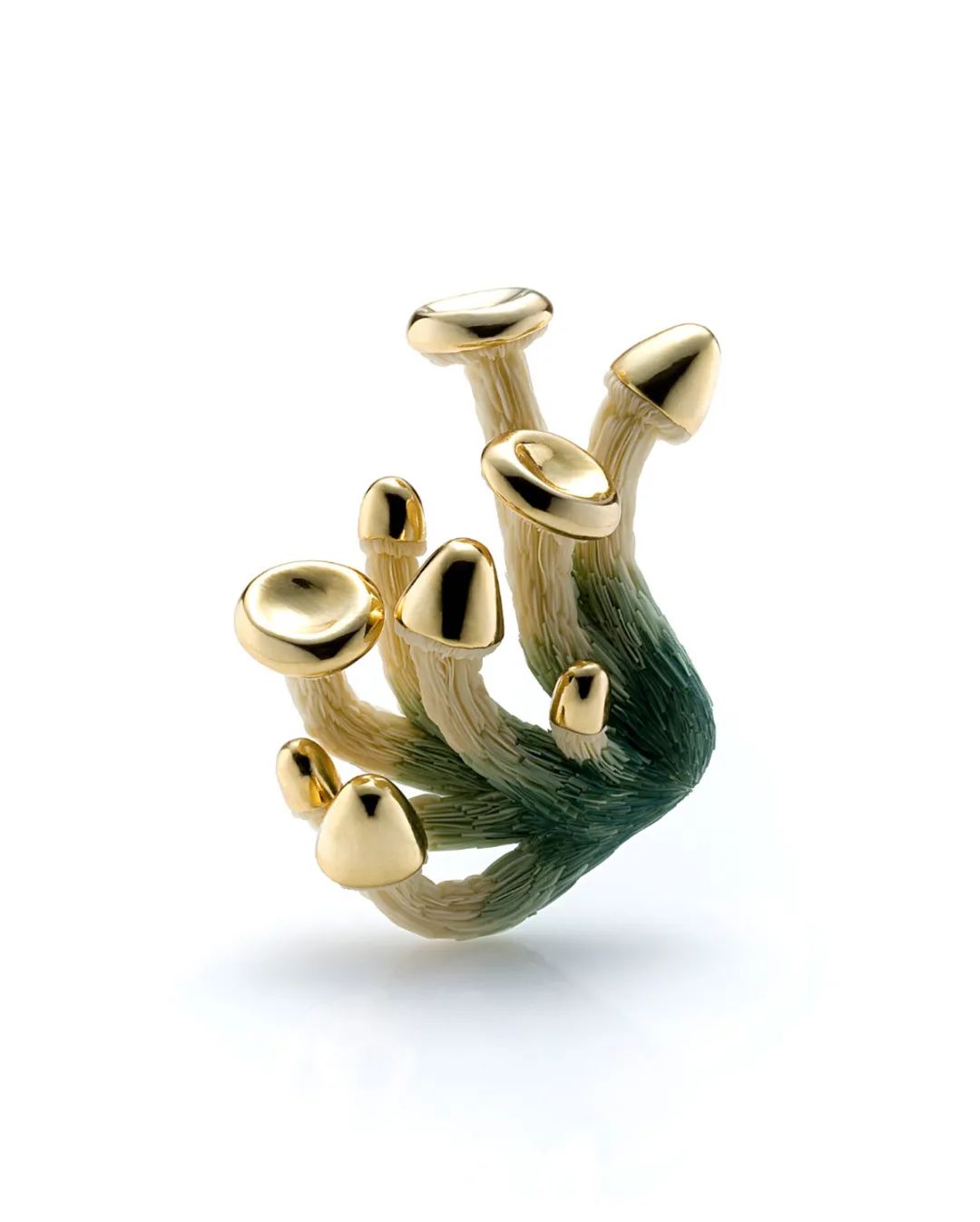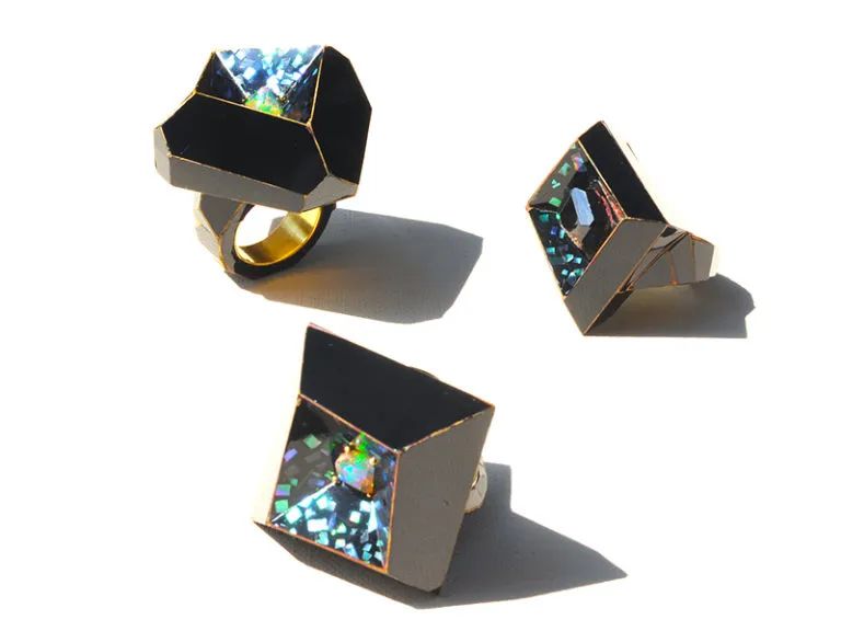 本次展覽包括戒指、項鏈和胸針,以及用于存放部分作品的手繪古董木制米盒。這些出色的作品靈感來自于藝術(shù)家Kageyama(影山)位于東京郊外富士山附近居所周圍的自然環(huán)境,在那里他可以清楚地看到夜空。為了制作這些令人眼花繚亂的作品,金匠大師影山使用了具有 300 年歷史的大漆碎片,這些大漆由大漆樹的有毒樹液制成。通過結(jié)合其他天然材料,如珍珠母、純金、朱砂和璀璨的巴洛克珍珠,以喚起黑洞、太陽和月亮等星系體的聯(lián)想。對于“黑洞”胸針,影山著眼于古埃及人對天文學(xué)的研究及其與金字塔的關(guān)聯(lián)。