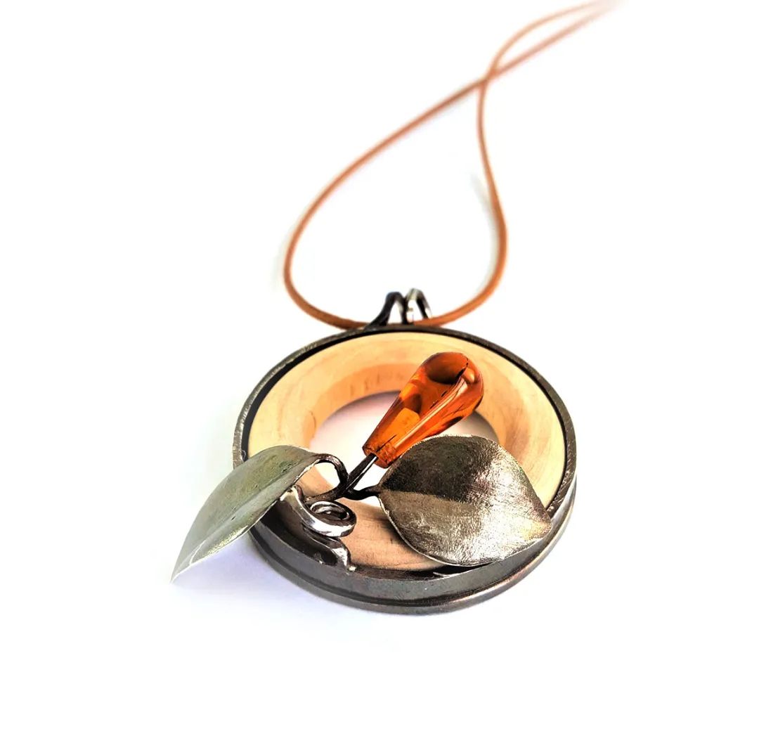 Photo in enamel, silver, found objects, mother of pearl, Jasper, gold, ebony