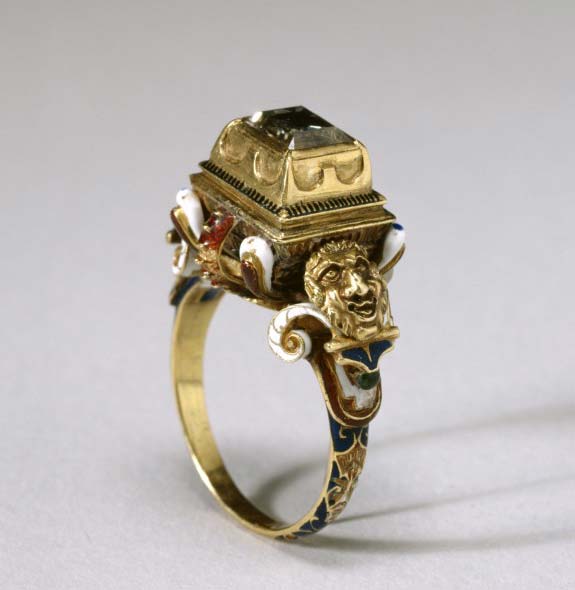 在大部分首飾的造型上,一開始的設計款式是順應中世紀,圣經宗教故事依然被作為創作的主題,但是隨著人文主義的發展,更具有個性化的設計或者與當時現實生活的日常物品成為了創作的主流;另外,制作者們也廣范圍從古希臘神話中提取創作主題。這也使得這一時期的作品的造型有無限的可能。