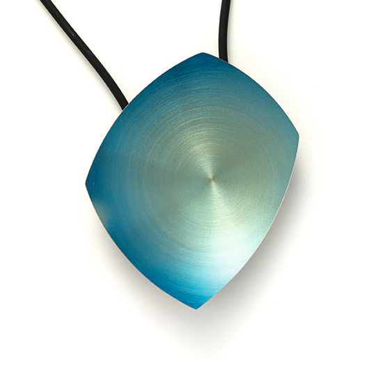 作品中恰到好處的蔚藍(lán)與淺金融合為底色,而因鈦金屬染色工藝的特性,作品表面保留了金屬質(zhì)感而展現(xiàn)光澤,搭配彩色的點(diǎn)綴或是金屬表面的線條肌理,讓人聯(lián)想到夜晚的的天空、晚霞、或者是極光,時(shí)而寧?kù)o,時(shí)而絢爛,時(shí)而神秘莫測(cè)。