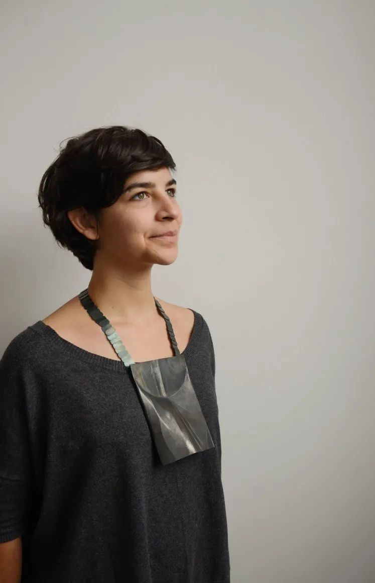 荷蘭首飾藝術(shù)家 Annelies Planteydt 的作品通過線條、填充、形狀來反映日常生活的組織或結(jié)構(gòu)。這些作品可以在不同的階段進行觀看——首先是一幅幾何形狀的繪畫。第二階段發(fā)生在拿起它時,從表面觀察并以半流體形式塌陷時,繪畫的順序被打亂了,但運動中有一個美麗的新形態(tài)。第三,被佩戴時,佩戴者可以重新定位項鏈和結(jié)構(gòu) - 繪圖階段引用的細節(jié)是模糊的,但永遠不會消失在視線或腦海中。