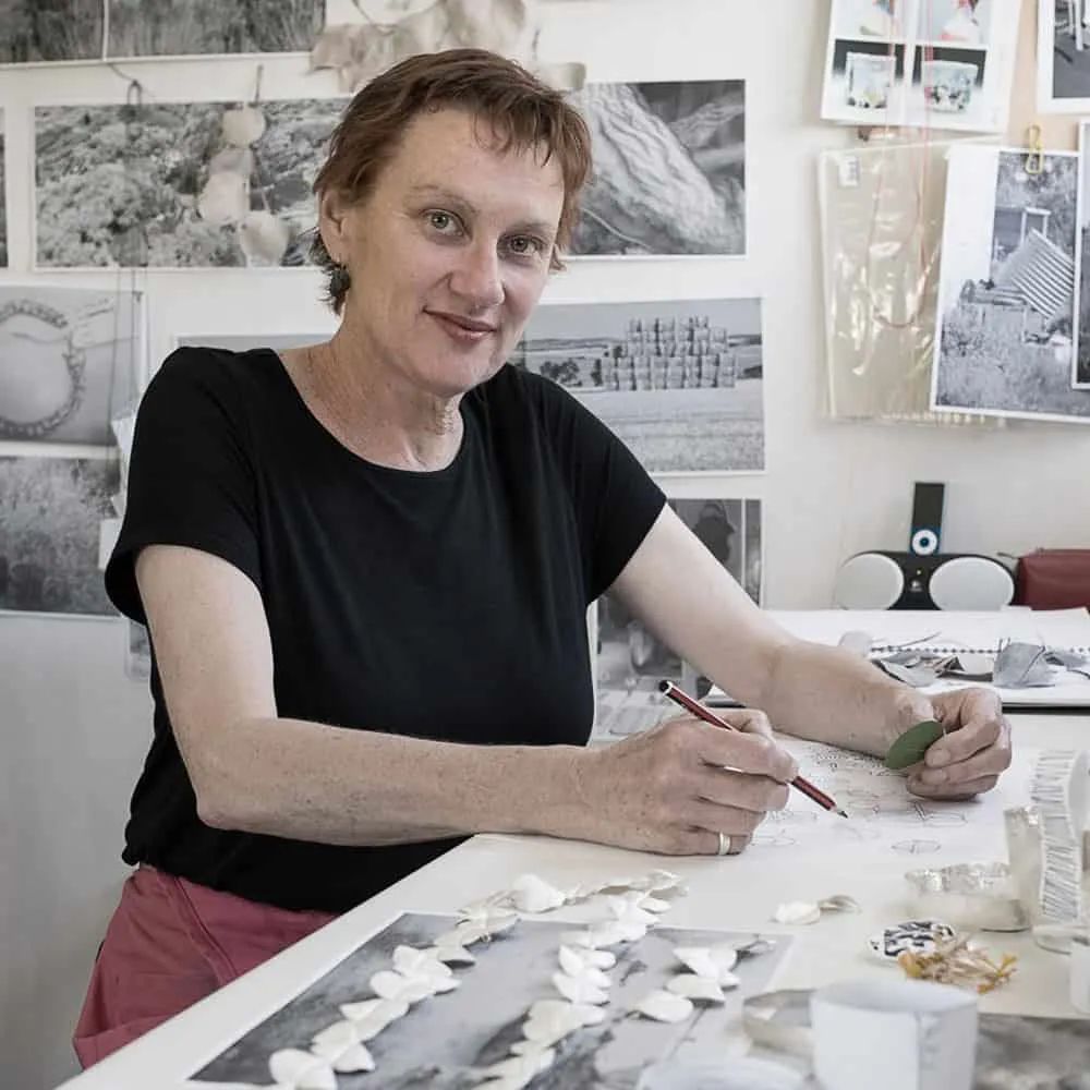 Julie Blyfield已經實踐了 30 多年,目前在她自己的獨立工作室里,俯瞰著她在南澳大利亞梅蘭茲的花園環境。Blyfield 的首飾和實物作品的靈感來自對植物標本、歷史銀器收藏和澳大利亞豐富多樣的景觀的研究,她使用金屬追逐、錘擊和表面鑿刻技術來解釋這些,主要是純銀和最近的銅。