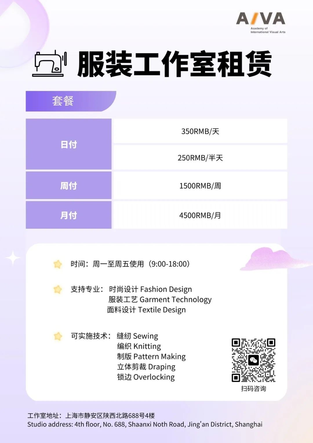 ●免費提供1小時指導,包括幫助準備場地設備、工作室使用操作規范介紹。可按需求預約平/立裁技術指導、靈感創意指導。