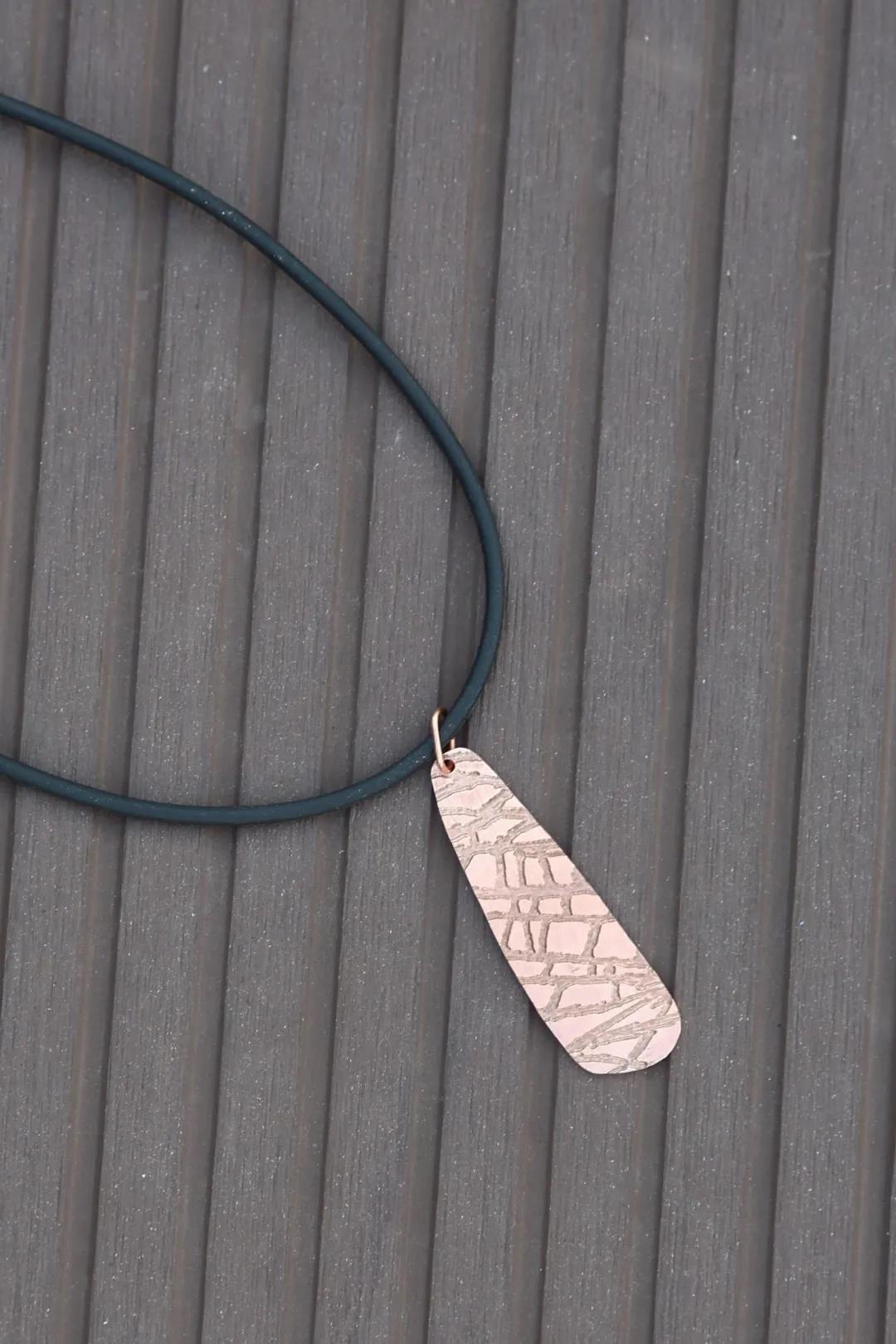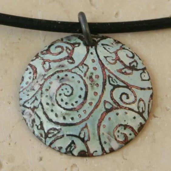 Acid Etched Copper Kiln Fired Enamel Necklace by tekaandzoe