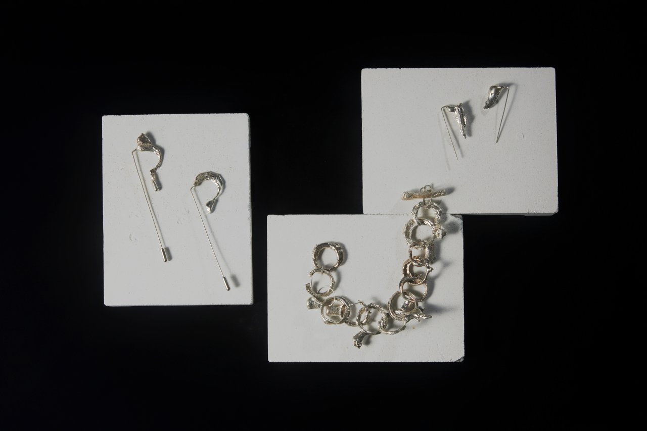 <A Ring is a Ring is a Ring> is a series of works in which not only the final outcomes are valued, but also the byproducts throughout the process. Together they represent how I view and create artwork as a jewellery artist with ADHD. By using the cuttlefish casting method, I have deliberately created a procedure containing numerous random factors, that required me to repeat the same process over and over again. Since the outline of the shape will fray and distort under high temperatures, copious amounts of cuttlefish sets were needed for more casting attempts. Through this repetition, my attention span would easily run out, thus causing the deformation of the ring shape while carving it out and accidental slips during the casting. All these “accidents” and “mistakes” have been collected and preserved. It is then, left to me to decide on how to do with them.