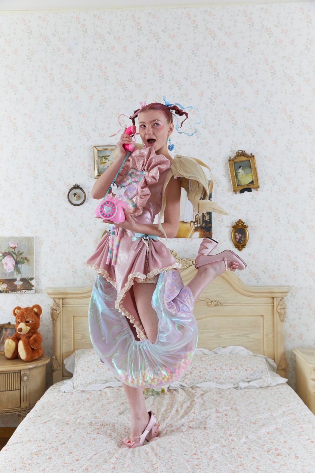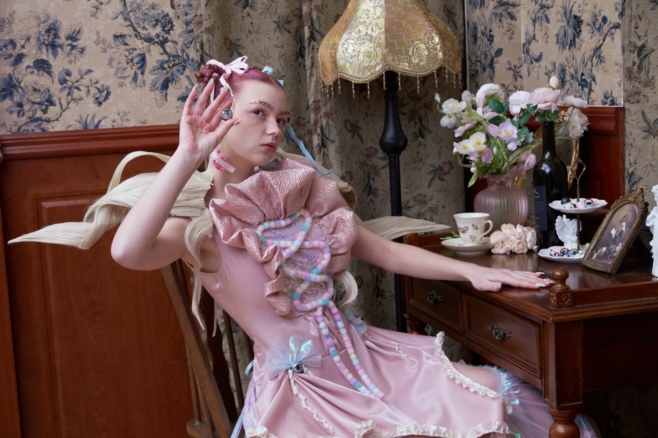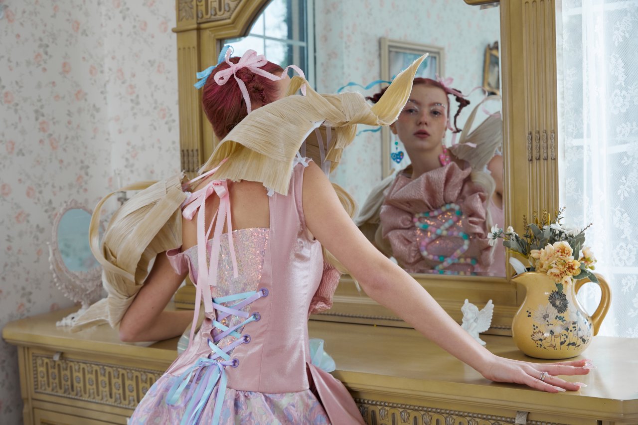 In <Witch Doll>, I drew inspiration from dreams to illustrate the objectification and bullying of women in society. I combined this concept with the sweet and eccentric style of Melanie Martinez's musical film "K-12". To showcase the costumes, I experimented with unconventional materials; such as wigs, eyes, teeth, and clay. Additionally, I designed and produced two ready-to-wear outfits. For the photoshoot, I chose a 'vintage' villa setting to portray the stereotypical image of women and the invisible chains of confinement.