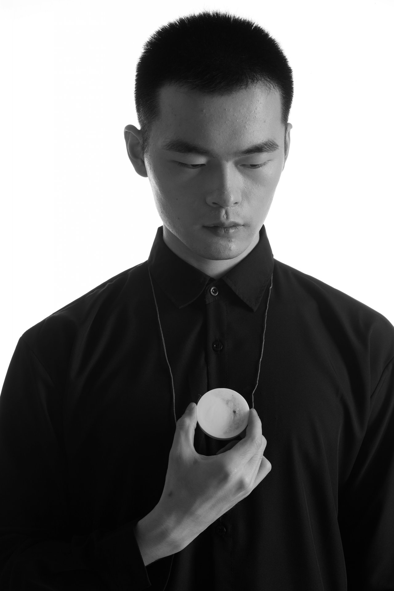 作品《痕跡》紀念了我一位去世的美術老師。在我對繪畫一無所知的時候,他帶我了解了什么是美術,從此美術成為了陪伴我至今的興趣,我將他對我的教導一直銘記于心。因此我選擇了畫室里常見的元素:石膏、鉛筆作為我的主要材料。圓形的石膏來源于素描練習中基礎的球形石膏,埋在明暗交界線的鉛芯會隨著佩戴者的摩擦不斷留下素描般的痕跡,逐漸使圓形石膏顯得立體,石膏與鉛芯留下的痕跡分別表現曾經對美術一無所知的我和老師對我的教導。以此來懷念曾經與老師在課堂上的時光。