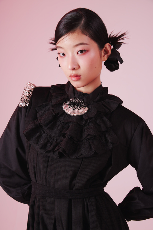 The inspiration for the project 'Laced Armor' comes from my experience of wearing Lolita dresses as daily attire. Nowadays, many people think that wearing Lolita fashion is a form of 'appealing to men,' since many Lolita models present a look that is fair-skinned, youthful, and slim. However, in my view, Lolita is a way for women to express their femininity in an extremely exaggerated manner. It helps me express my personality and has become my own form of soft armor. Lace is an indispensable element in Lolita fashion, so I chose it as the theme for my work. Lace is often seen as fragile and delicate, but I hope my work can showcase the resilience and strength of myself and all women who love the Lolita style. Therefore, I decided to recreate the lace on clothing with metal, retaining as much of the lace's patterns and textures as possible to create a contrasting effect.