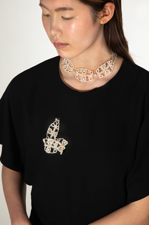 我對(duì)心理學(xué)相關(guān)問(wèn)題有濃厚的興趣,我研究的方向是內(nèi)心的羞恥癥。東亞社會(huì)存在許多 隱形的羞恥,影響著許多人的心理。 發(fā)現(xiàn)并正視存在的羞恥感是我創(chuàng)作設(shè)計(jì)項(xiàng)目的目的。在作品《精致羞恥》中, 我發(fā)現(xiàn)主要存在的羞恥群體是女性,內(nèi)衣是束縛女性身體的,但我們可以擁有選擇穿或者不穿的權(quán)利,所以我設(shè)計(jì)了可以有多種佩戴性的內(nèi)衣扣作首飾,來(lái)鼓勵(lì) 同樣羞恥焦慮的人。