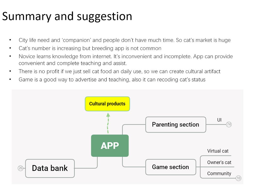 My third project was inspired by the epidemic which was happened in the early 2020. During this severe plague, a lot of foodservice industry has taken a hit. Many companies began to develop new products to survive. Except for human beings, pets have been suffering in this epidemic too, especially the outdoor pets. And there is always some discussion about pets’ security. I think pet business is a trend. So, what kind of pet is suitable to our life? What should we notice when we keep pets and how can we spread the knowledge to the owners? Based on these questions, I have my own subject <Research on App for Cat Novice>.