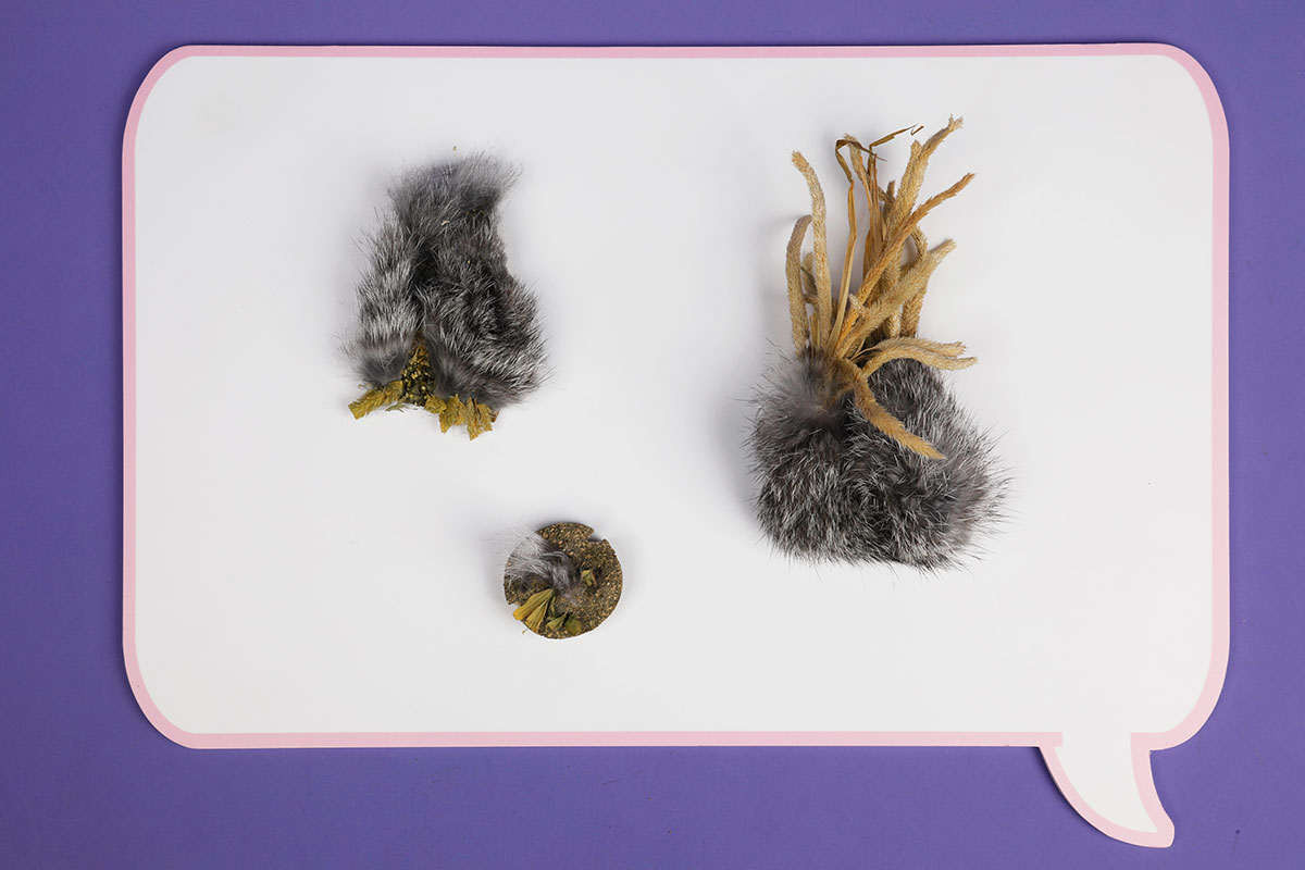 我一直在不同的創(chuàng)作中嘗試創(chuàng)新的材料。在我的最近的作品《陪伴》里,我嘗試了兔毛和兔子草料的結(jié)合來(lái)紀(jì)念寵物兔給我?guī)?lái)的快樂(lè)時(shí)光。通過(guò)不斷的實(shí)驗(yàn)探索,我最終完成了四件作品,并通過(guò)材料的特點(diǎn)鼓勵(lì)觀眾感受兔毛的順滑與兔草的清香。