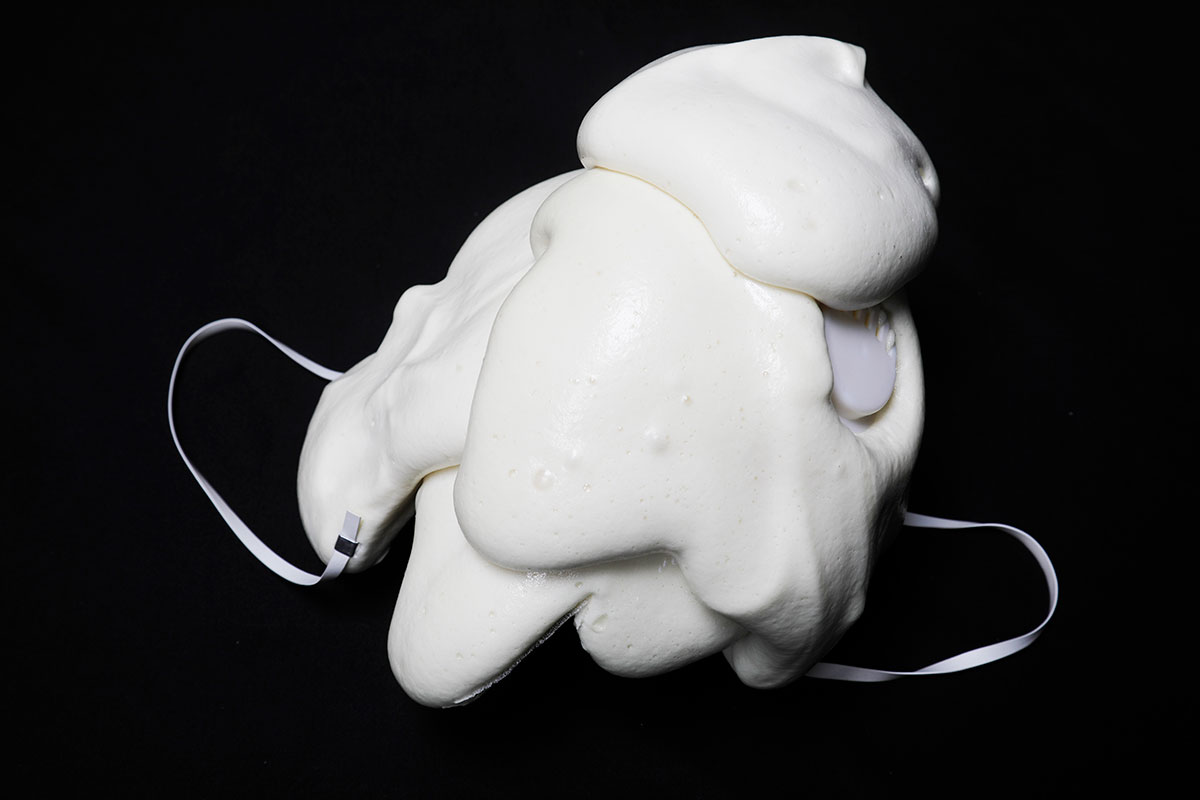My art practice is using visual language to discuss some social phenomenon or to explore what jewellery is in contemporary context. For example, in my recent work The Price, I discuss an abnormal and uncontrolled phenomenon to the increase in price of the epidemic prevention products. I protrude the violence premium prominently with an exaggerated artistic technique. The material is based on the same view by using virus of low density and expandable foam; by dyeing, expanding, shaping and solidifying, I combine the foam and the prevention products together to receive the expected visual effect.